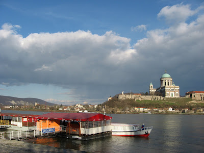 Here's another picture, without Zsolt and Agi, looking from Slovakia across the Danube to the cathedral at Estergom in Hungary: (This picture doesn't really capture how BIG the cathedral is)