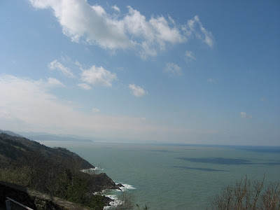 The beach from the top of the funicular - you can see how it is long and nicely progtected from big waves by the island: