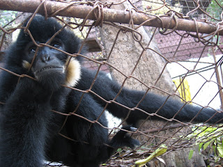 Buddhist temples are called wats. They are all over Vientiane. Literally, like every 3 blocks. I’ve only been in a couple, but if I wanted to go to one a week for the next year, I feel confident that I would not have to go back anywhere. The day I arrived, Christine took me to a wat near our house and showed me some monkeys she can hear at night. (I haven’t heard them, or haven’t recognized them as monkey sounds.) They were pretty cute, but unfortunately, I was so tired and disoriented from the 29 hour journey, that I have no idea which of the 3 wats within a 2 block walk of our house (one north, one south, and one east) they live in. In fact, I’ve found that while Christine showed me many useful places (the department store, the DVD store, and the book store amongst others) that afternoon, I have been unable to return to an of them without getting directions again. It was still a nice tour, though, and a good way to stay awake until sunset, so I didn’t have major jet lag. (I slept till 5AM the day after I arrived, which was a new record for sleeping in according to Christine)